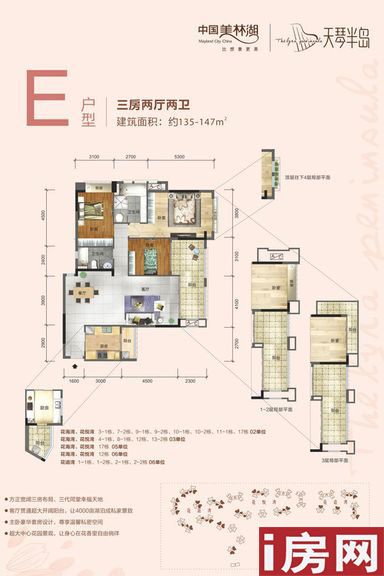 美林湖以“生态都市”为理念,构筑“一区三镇八园”的开放式格局,实现了自然与都市生活的平衡,为人们带来崭新的都市生活体验。 美林湖别墅总户数800户,全新星海游艇独栋别墅和阅麓山别墅组团均为3层高,其中星海游艇独栋别墅货量为166套,户型面积为288-345方。洋房【天汇半岛】组团,产品包括60-146平米一至三房单位的19层高楼栋 。
